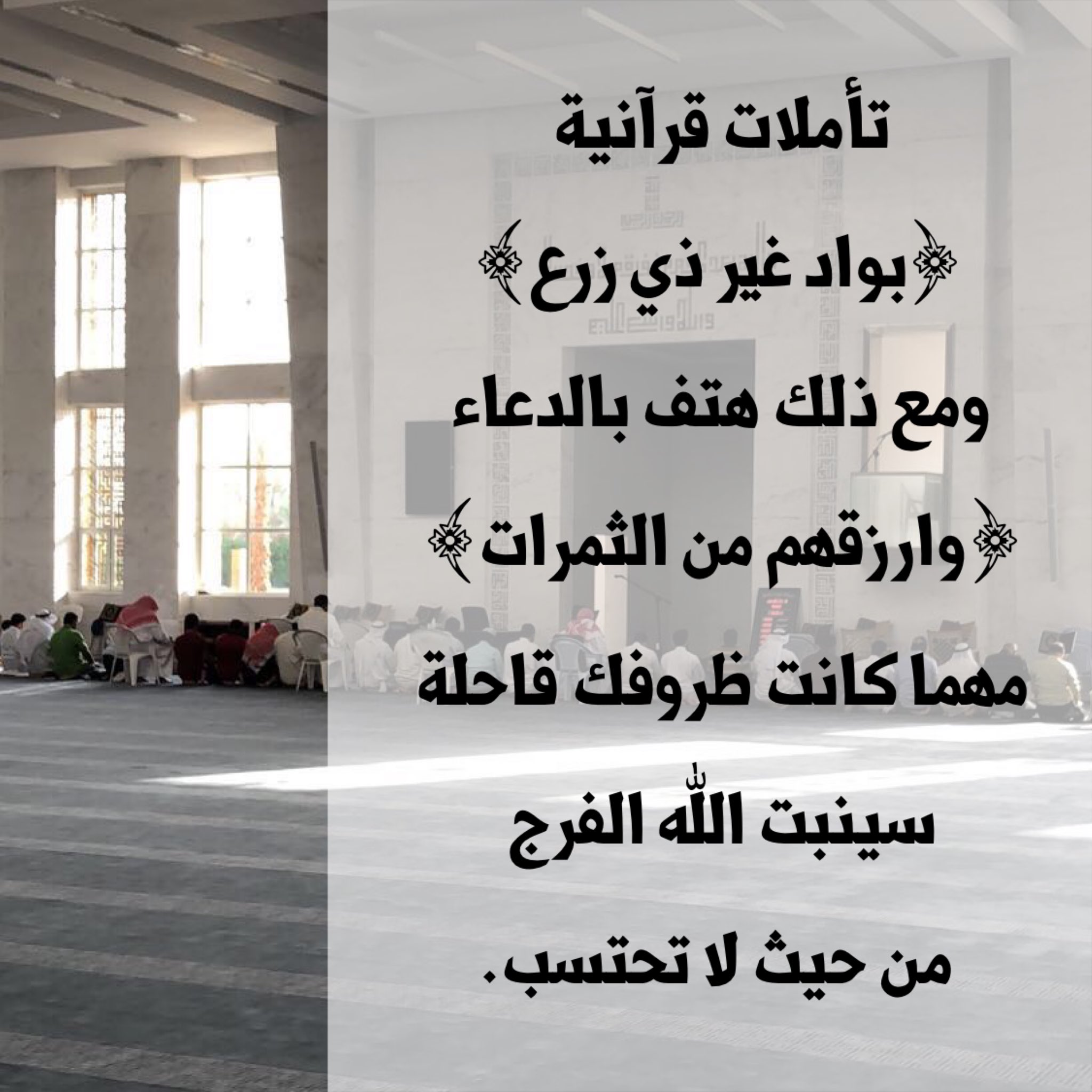 جماليات على تويتر بواد غير ذي زرع ومع ذلك هتف بالدعاء وارزقهم من الثمرات مهما كانت ظروفك قاحلة سينبت الله الفرج من حيث لا تحتسب