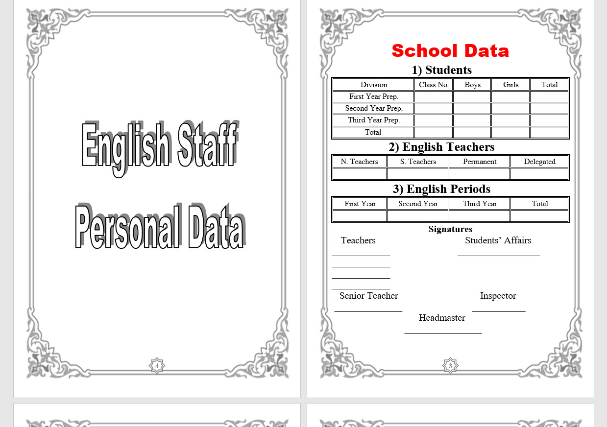سجل المعلم الاول لغة عربية Doc سجل المعلم الأول المشرف لغة عربية للمرحلة الإعدادية
