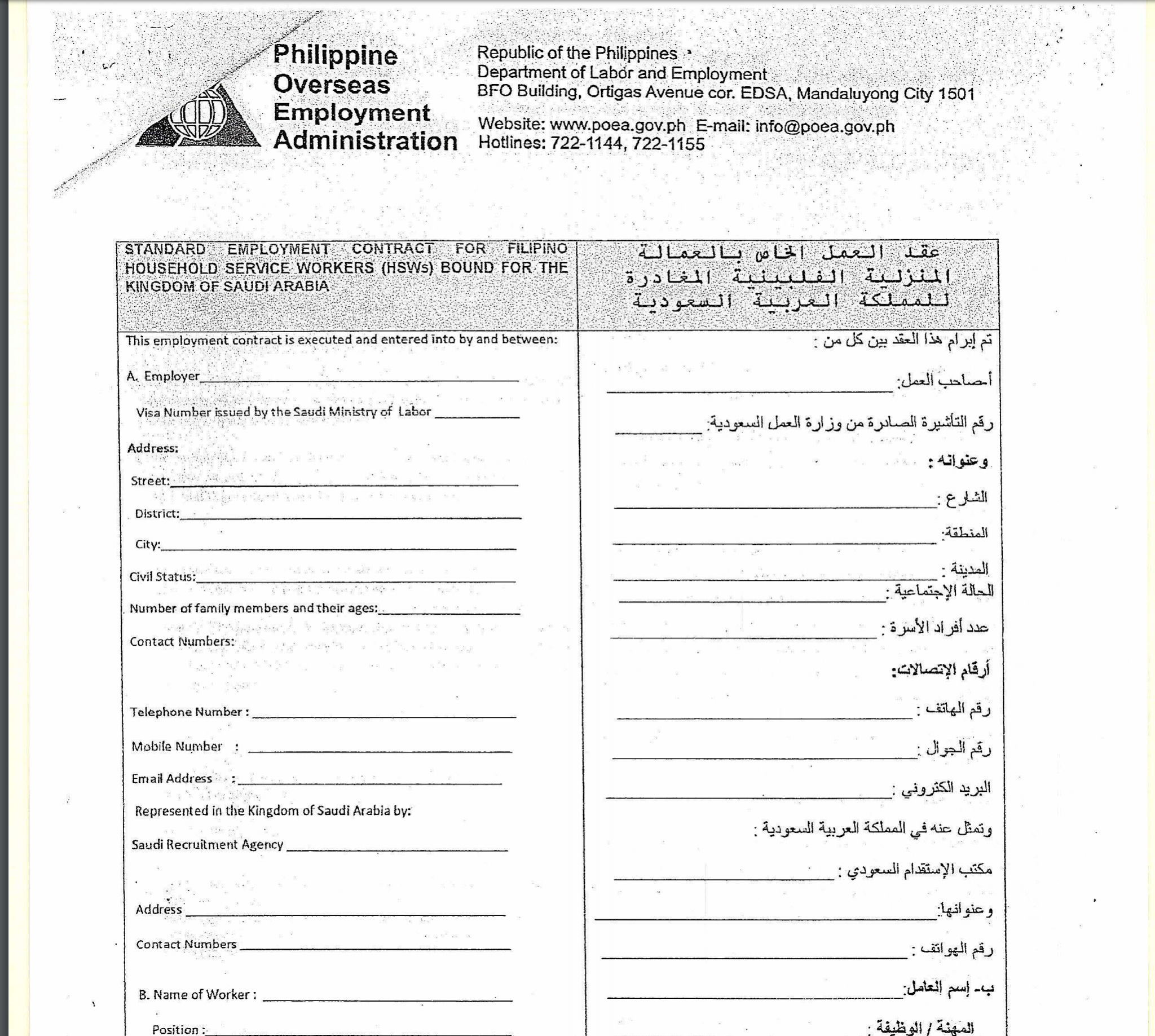 عقد العمل الخاص بالعمالة الهندية المغادرة للمملكة العربية السعودية Pdf Free Download